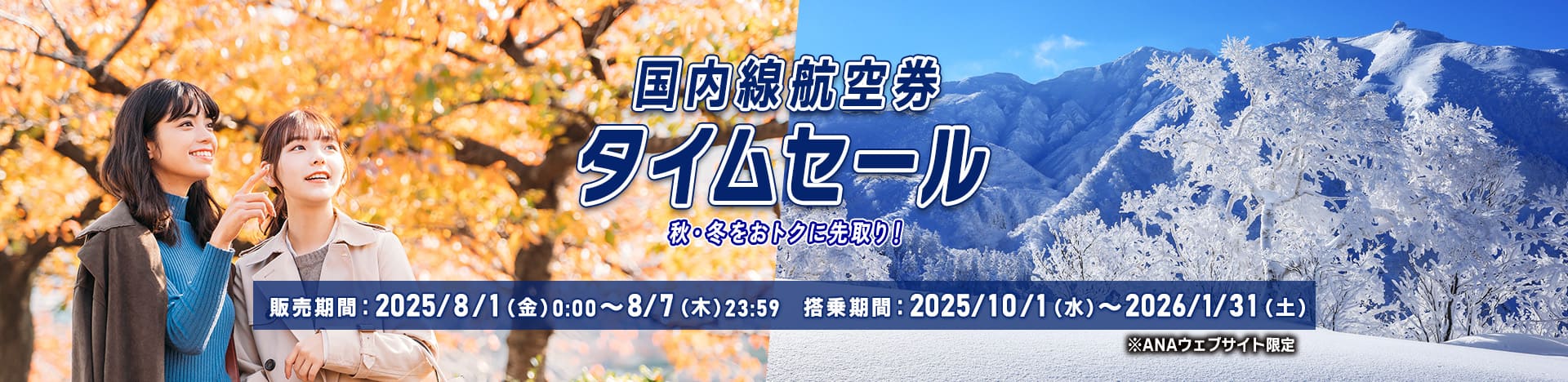 ANA タイムセール 秋から冬を先取り!8月1日~8月7日~秋から冬の旅行は今の内に購入